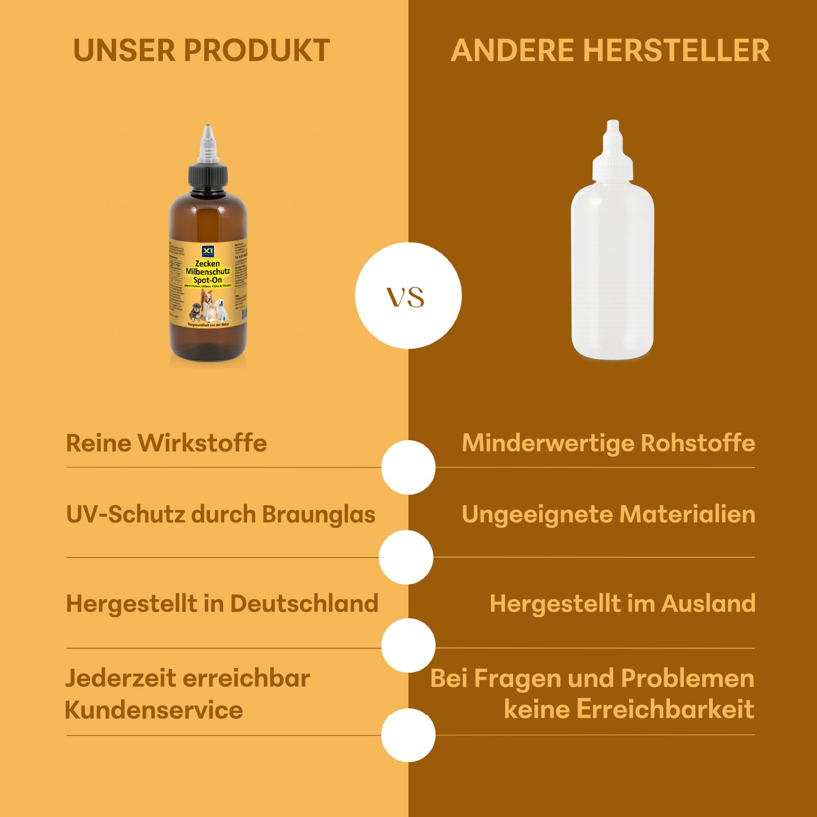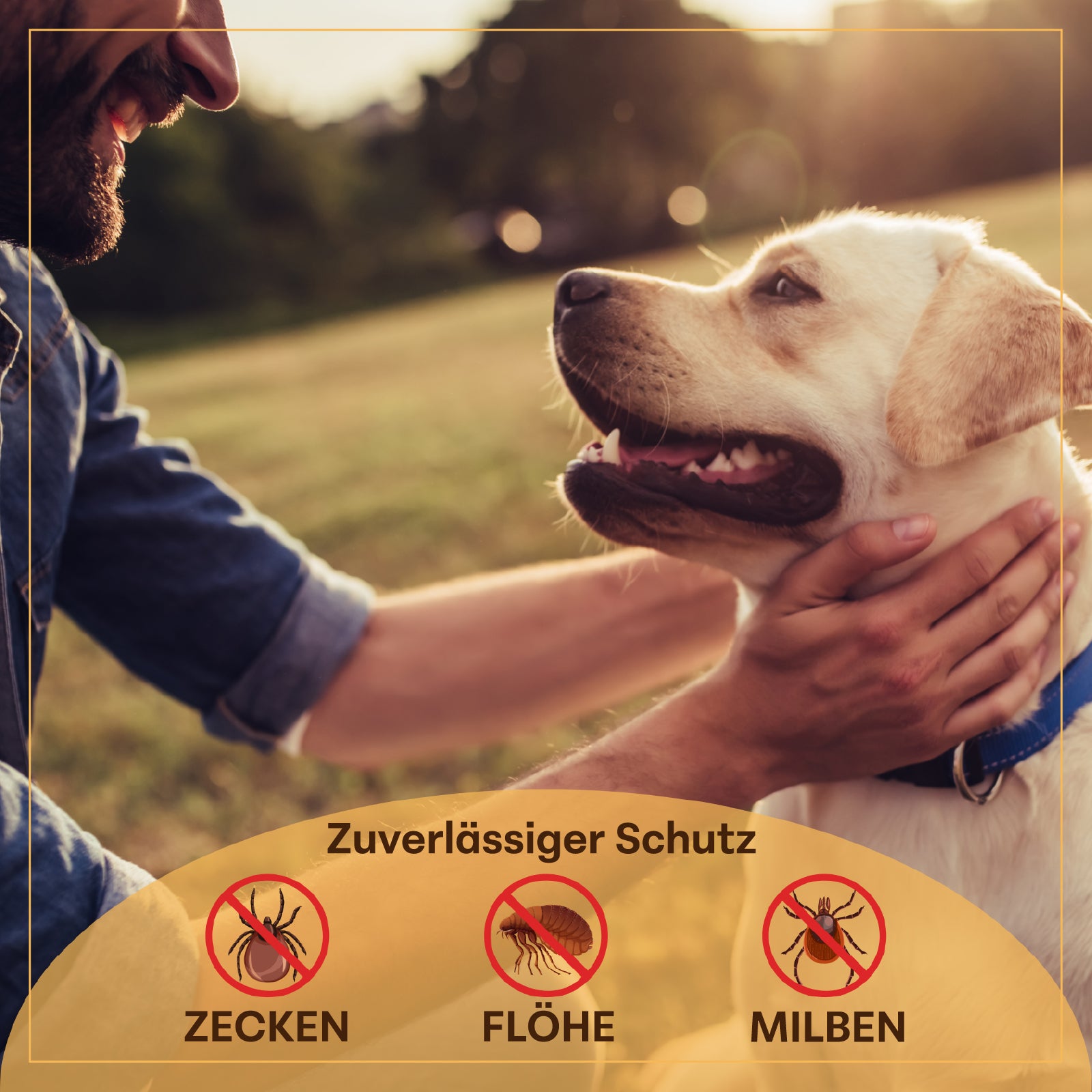 - hält Zecken, Flöhe, Milben und Haarlinge von Ihrem Hund fern