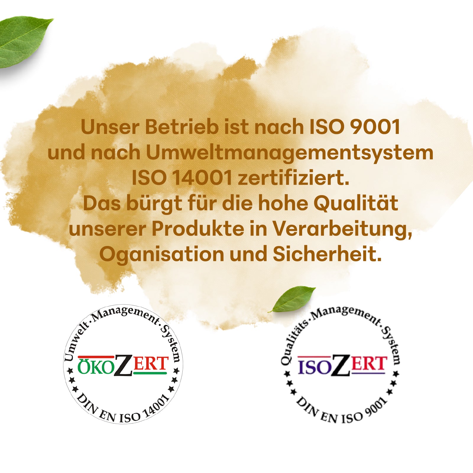 Frei von Gluten, Laktose, Fructose, Nanopartikeln und jeglichen Zusätzen.