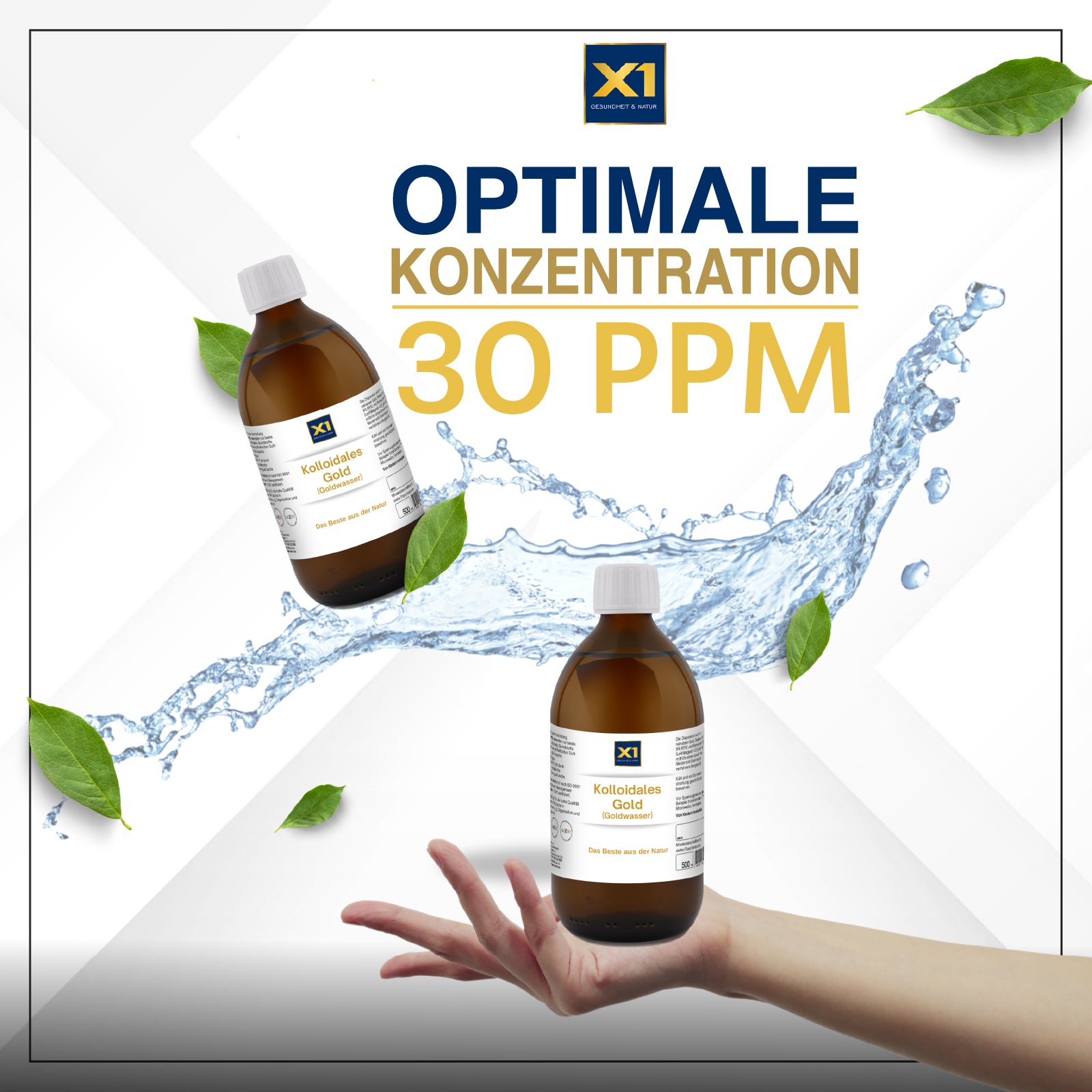 30 ppm (30 mg pro Liter) ist eine optimale Konzentration für kolloidales Gold